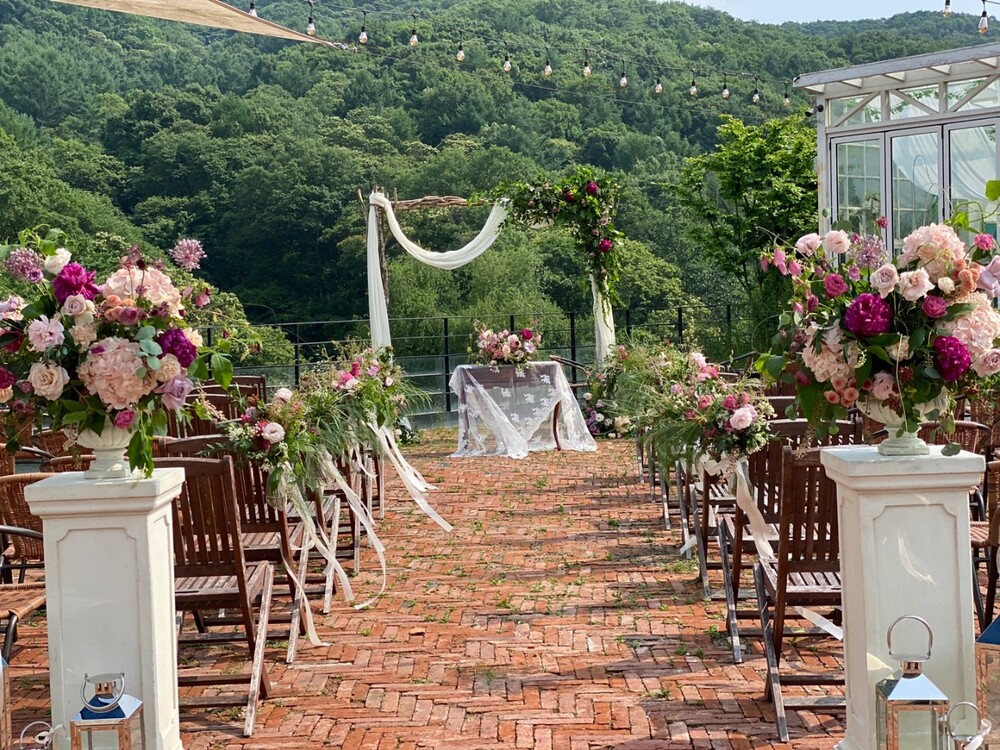 싱그러운 풀잎이 가득한 야외웨딩홀